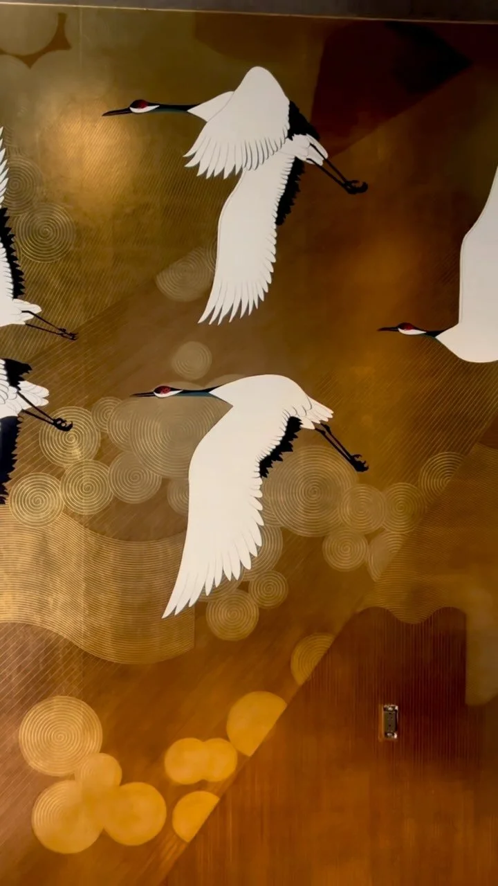 Handmade gold leaf wallpaper for Hermes. The difficulty level on this job was pretty high but our team knocked it out of the park!